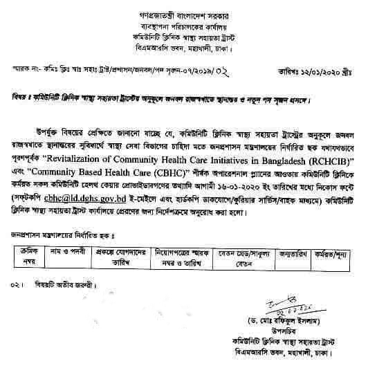 Community Health Care Provider (CHCP) দের চাকুরী স্থায়ীকরন সকল বিজ্ঞপ্তি